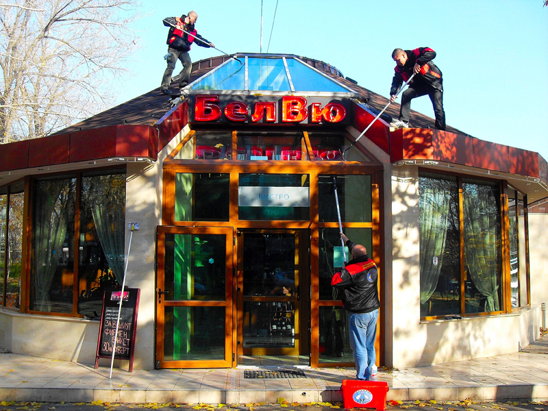 Измиване на прозорци и витрини над 3м. височина /еднократно/ - 0.80 €/кв.м