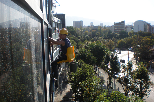 Измиване на прозорци и витрини над 3м. височина /еднократно/ - 1.00 €/кв.м
